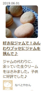 作っていただいたレシピは、好きなジャムで!ふんわりブッセにジャムを挟んで♪ で