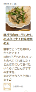 にんにくがガツンと効くので、スタミナ料理としても我が家では人気です。