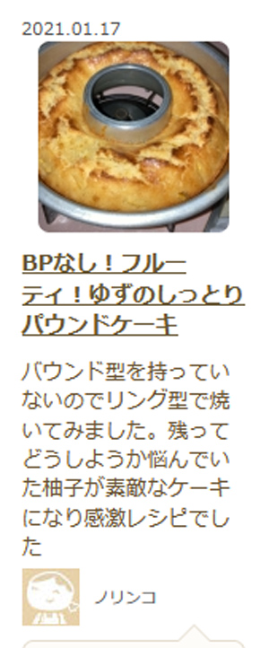 最後は、BPなし!フルーティ!ゆずのしっとりパウンドケーキ を