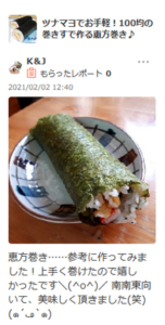 楽天レシピで恵方巻のレポートいただきました!
