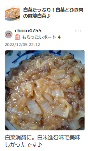 我が家でも白菜消費で作ったんですが、ご飯が進む味と言っていただけて嬉しいです。^^