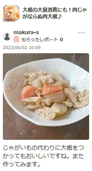 肉じゃがのダイコンバージョン、作ってくださる方がいて…とっても嬉しいです!^^