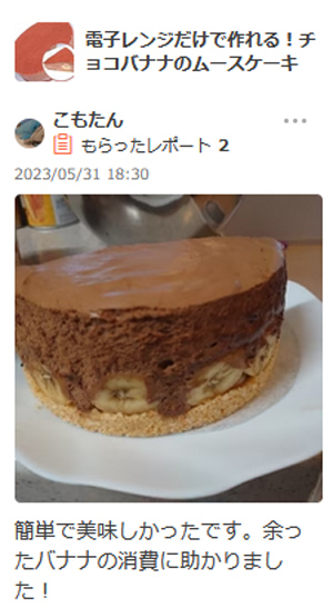 電子レンジだけで作れる!チョコバナナのムースケーキ を