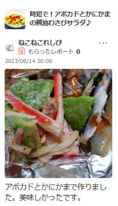 作っていただいたのは、時短で!アボカドとかにかまの醤油わさびサラダ♪ で
