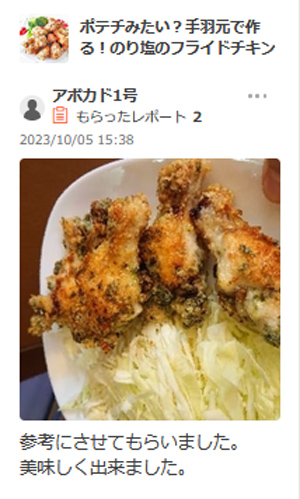 今回は、楽天レシピさんでつくったよ!報告を2件いただいたのでご紹介します。
