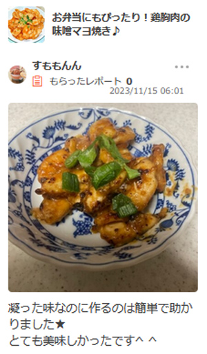 まずは、お弁当にもぴったり!鶏胸肉の味噌マヨ焼き♪ を