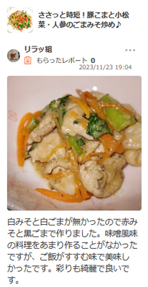 味噌風味の料理をあまり作ることがなかったですが、ご飯がすすむ味で美味しかったです。