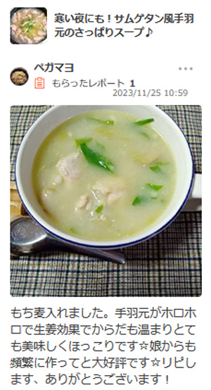 まずは、寒い夜にも!サムゲタン風手羽元のさっぱりスープ♪ を