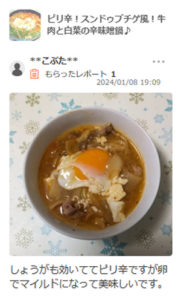 しょうがも効いててピリ辛ですが卵でマイルドになって美味しいです。