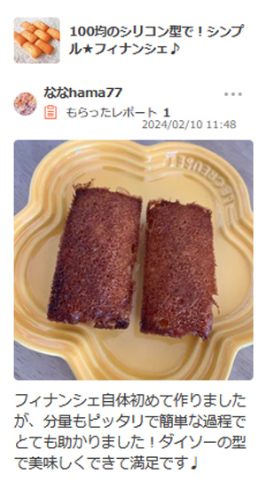 フィナンシェ自体初めて作りましたが、分量もピッタリで簡単な過程でとても助かりました!
