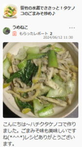 こんにちは〜ハチクタケノコで作りました。