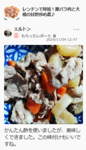 ずぼら日記【2024/11/8】楽天レシピのつくれぽを1件ご紹介!