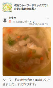 シーフードの出汁が出て美味しくできました。