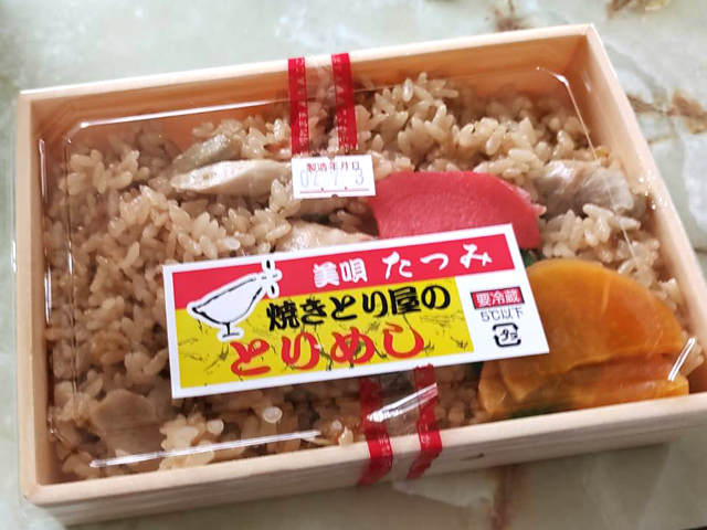 そして、11時頃に終わったよーとの連絡が入り、そのまま、たつみというお店にとりめしを買って帰ろうということに。