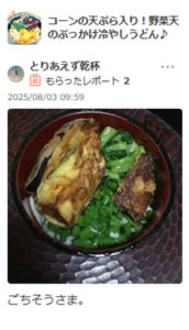 コーンの天ぷら入り!野菜天のぶっかけ冷やしうどん♪ を