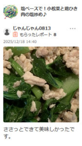 塩ベースで!小松菜と鶏ひき肉の塩炒め♪