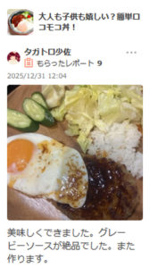 グレービーソースが決め手だったので、褒めていただけて嬉しいです。