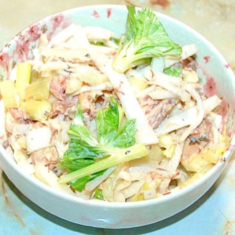鯖の水煮缶で!セロリと大根と鯖のマヨポンサラダ