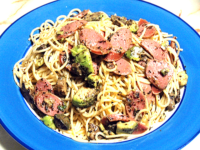 ドライバジル消費!アボカドとソーセージのパスタ♪