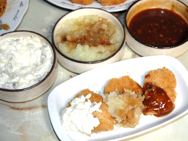 市販のチキンカツをアレンジ!三色ソースのディップ♪