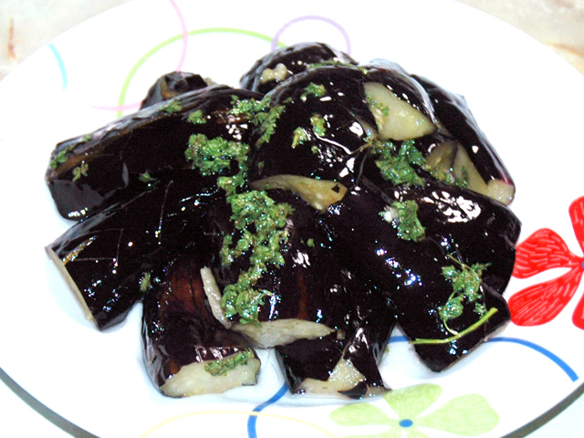 <所要時間:約5分> 材料:4人分 ●茄子…4~5本 ●パセリのみじん切り…2房分 ●酢…大2 ●塩…小1/2 作り方 茄子はヘタを取り、皮目に浅く格子状に切れ目を入れる。 その後食べやすい大きさに切る。 ボールにパセリのみじん切りと、酢、塩を入れて良く混ぜ合わ... -