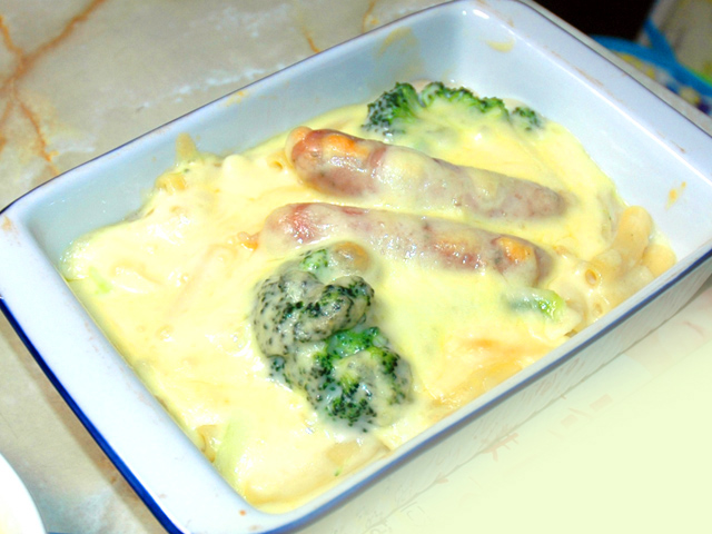 簡単ホワイトソース!ソーセージONマカロニグラタン